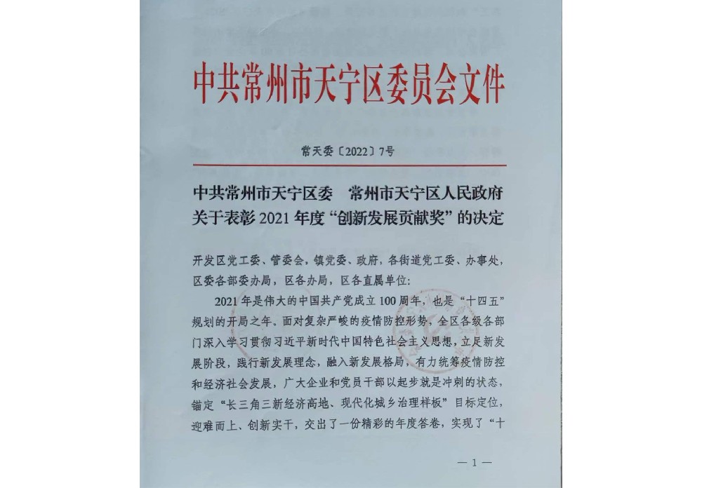 天寧區(qū)工業(yè)五星企業(yè)紅頭文件