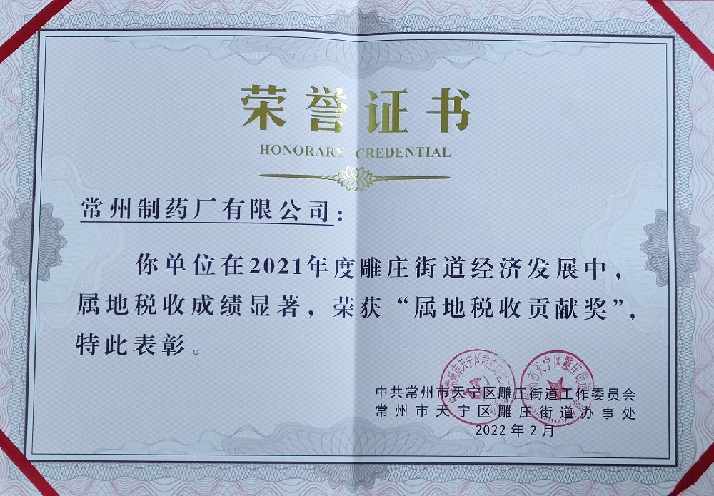 天寧區(qū)街道頒發(fā)重大貢獻獎