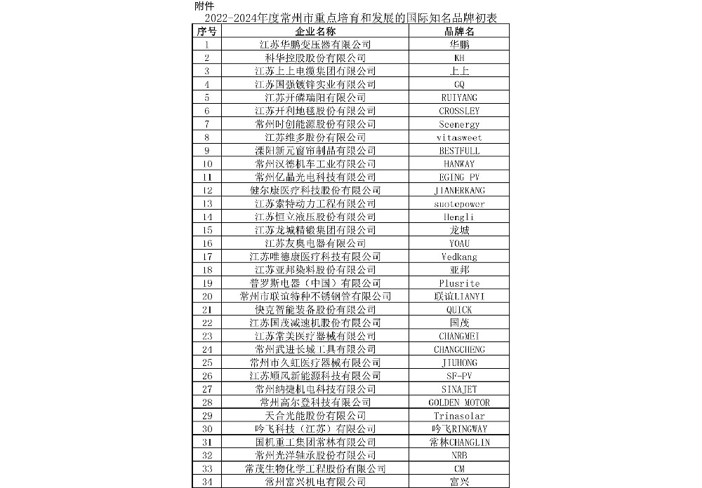 關(guān)于2022-2024年度常州市重點培育和發(fā)展的國際知名品牌評選結(jié)果的公示