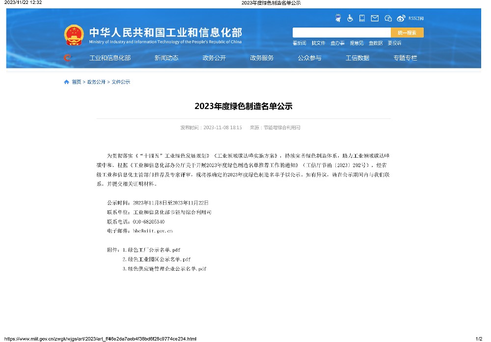 工業(yè)和信息化部 2023年綠色工廠公示名單